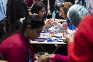 In addition to the talks, the event included a vibrant craft and bake sale that showcased the skills and creativity of the Tyndall community. Attendees enjoyed beautiful handmade arts and crafts, a selection of tasty homemade treats, and a henna station. A world map invited participants to add a pin marking where they are from, celebrating the 52 nationalities represented at Tyndall.