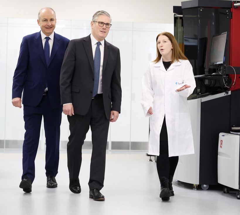 Tyndall National Institute, based at University College Cork (UCC), was honoured to welcome An Taoiseach Micheál Martin and the Prime Minister of the United Kingdom, Sir Keir Starmer, to showcase Tyndall’s cutting-edge research and UK-Ireland collaborations in sustainable semiconductor technologies.